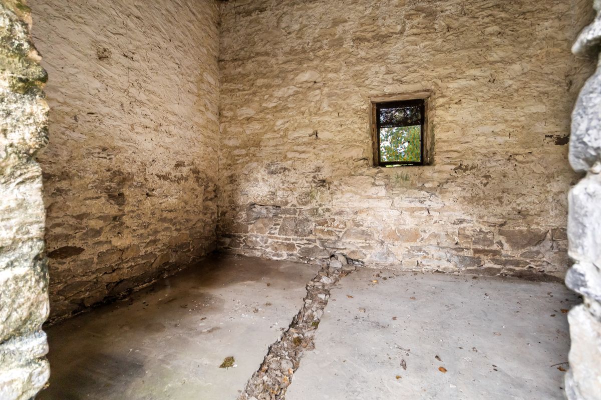 – Stone outbuildings and courtyard.