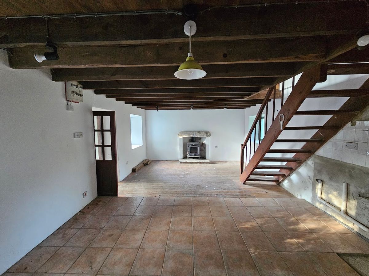 The farmhouse offers an excellent southerly aspect. The internal area of the farmhouse is about 62 sqm / 667 sqft and includes a porch, kitchen / dining / living area on the ground floor and a bedroom and bathroom on the first floor. There is also a spacious traditional stone outbuilding.
