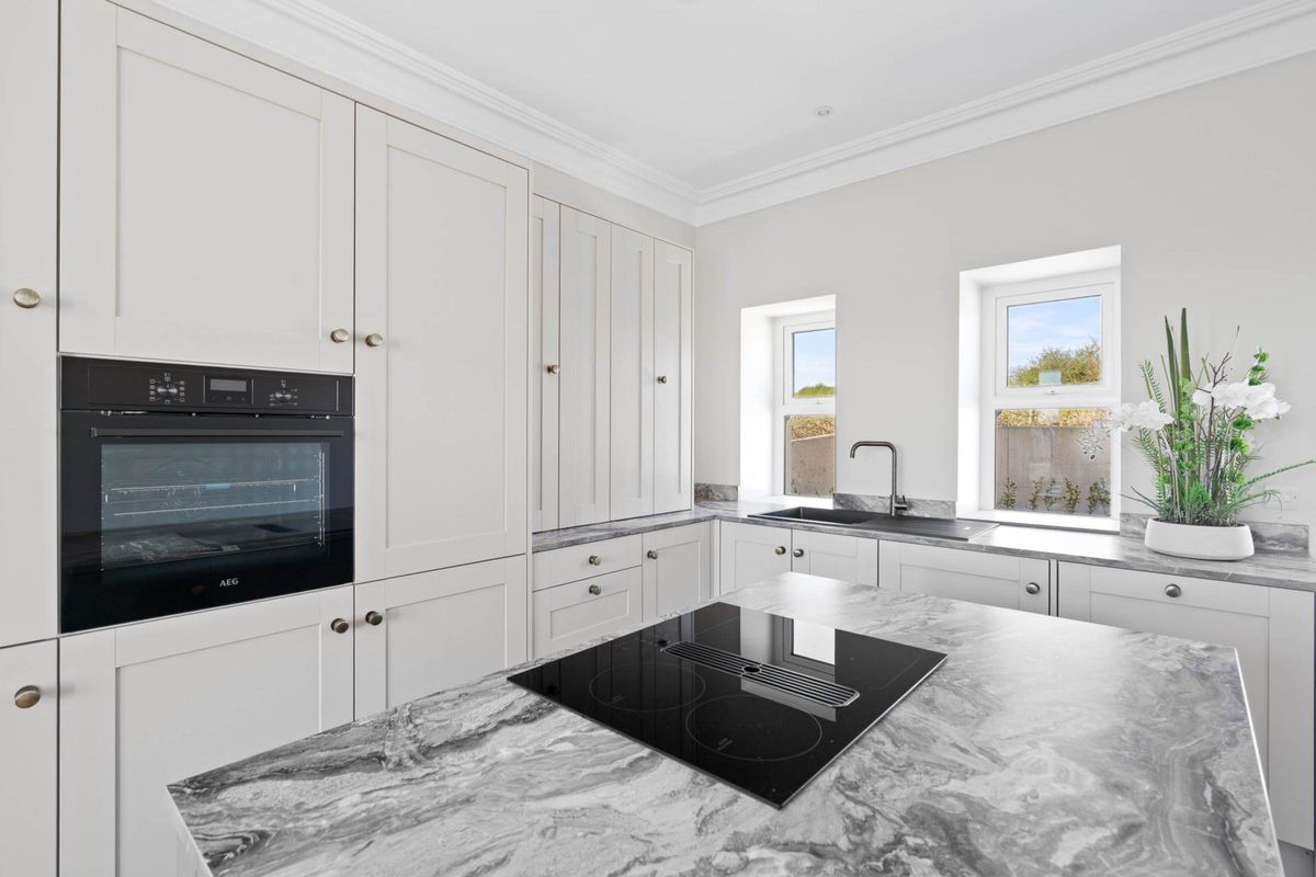 Integrated appliances which consist of a four-ring induction hob and extractor unit. Bosch dishwasher, a Hotpoint washing machine and an electric oven and a fridge/freezer. Additionally, there is a larder cabinet and a pantry unit to store and hide away your appliances, such as the kettle and toaster etc.