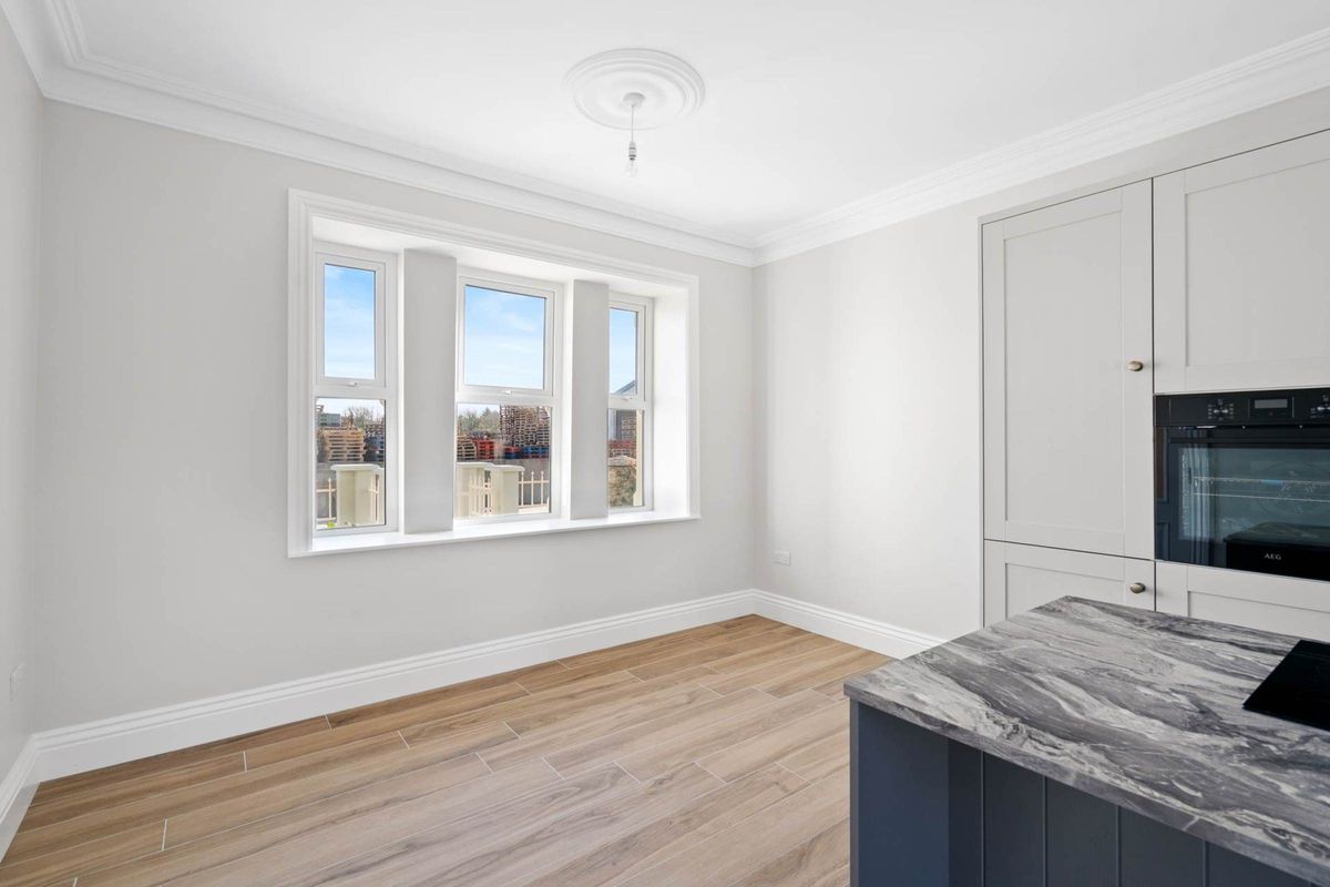 Bedroom four: Located on the ground floor is 3.3m x 2.85m and has wood effect tile flooring and high ceilings.