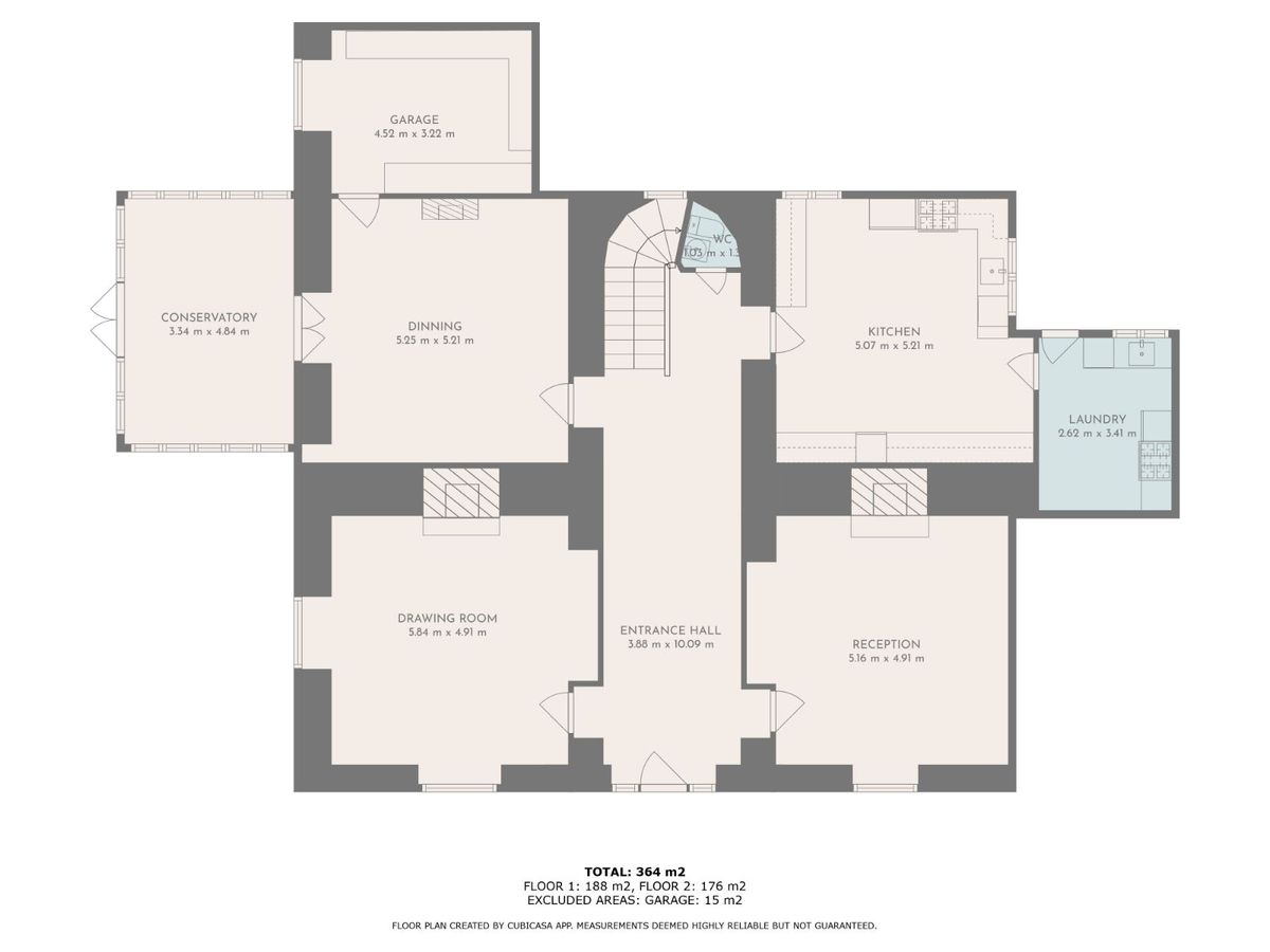 Internally, the house offers generous and well-proportioned living spaces that combine everyday practicality with period charm. The entrance hall extends the length of the house and features original timber flooring and an elegant staircase. The drawing room is flooded with light and offers garden views, while the dining room is equally spacious and ideal for entertaining. A second reception room offers flexibility as a study or informal sitting room. The kitchen sits at the heart of the house and could be readily reimagined as a modern country kitchen-dining space. A delightful south-facing conservatory captures the afternoon sun, and a boot room with rear access provides practical utility/laundry.