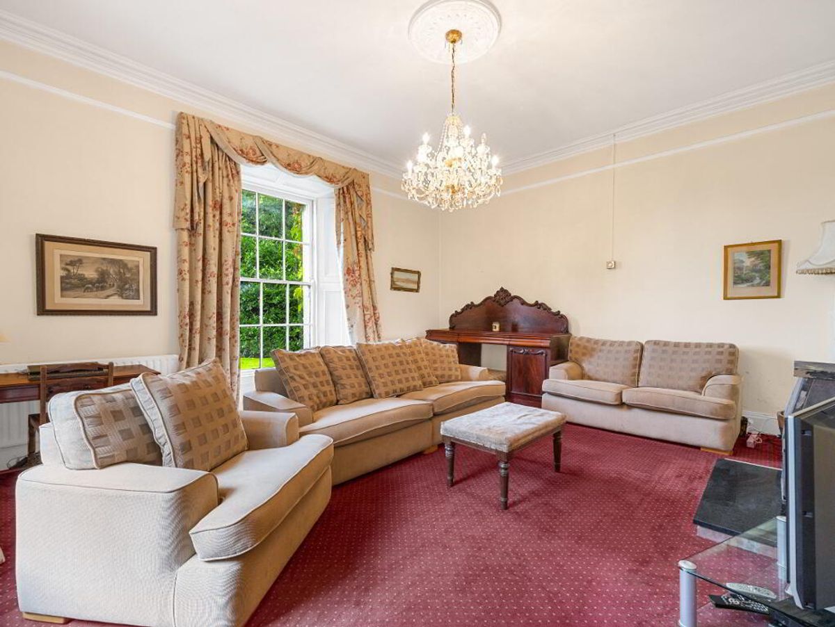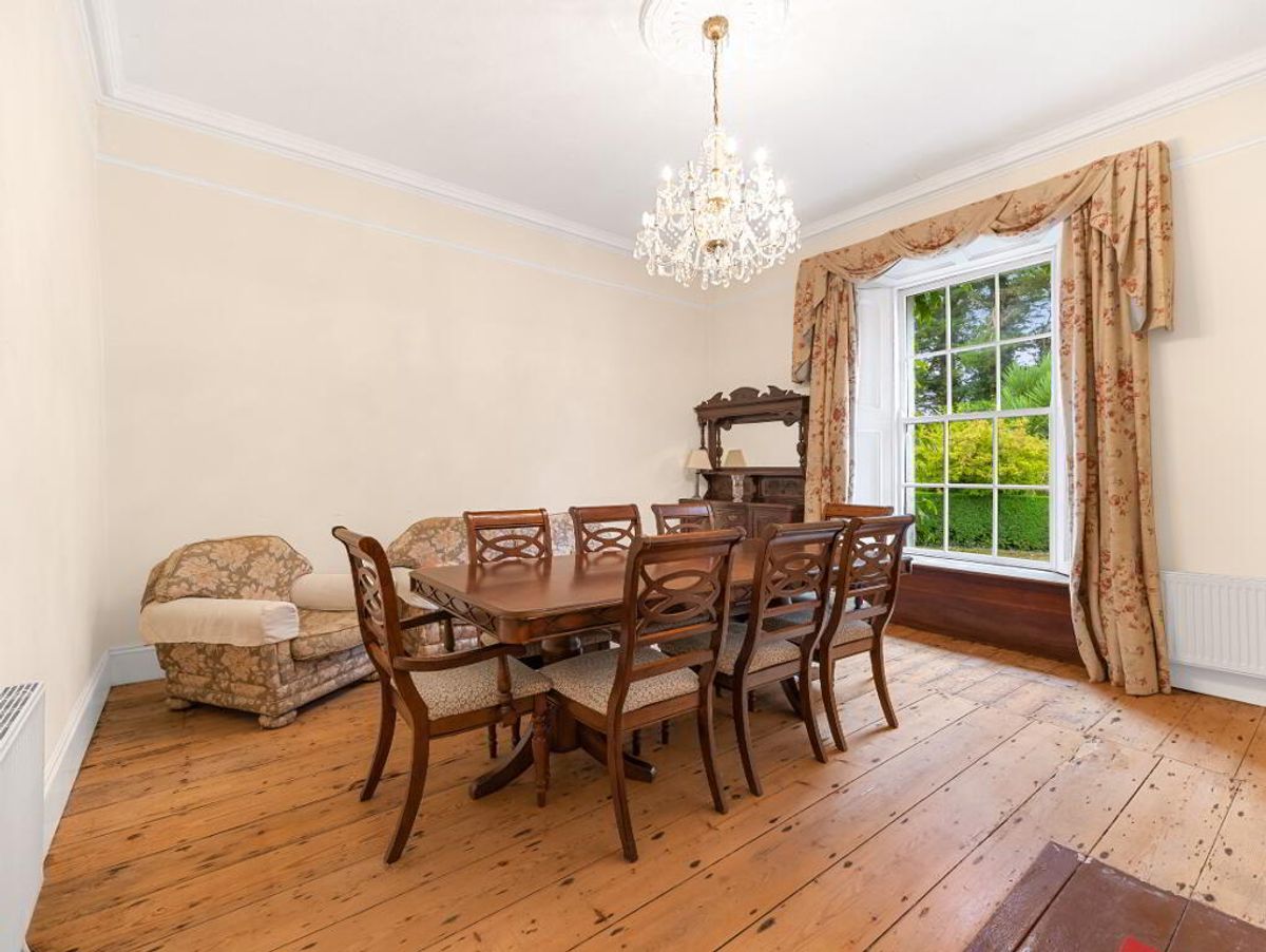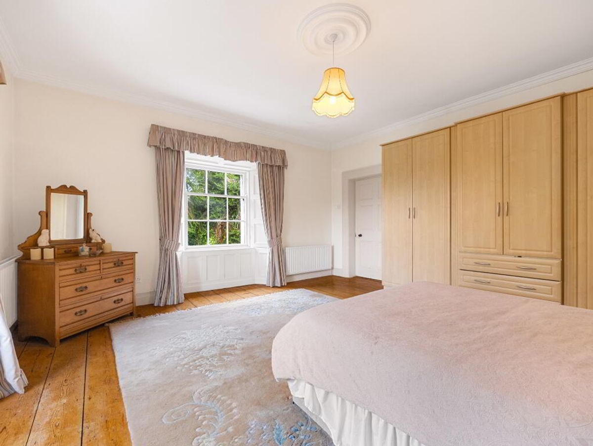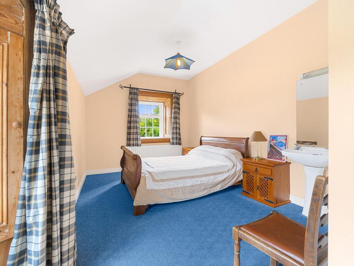 A fine two-storey Georgian-style farmhouse with distinctive granite features, built in the mid-19th century. Constructed of stone with a rendered exterior beneath a slate roof, the house is currently occupied and in generally good condition, though it would benefit from internal modernisation.
