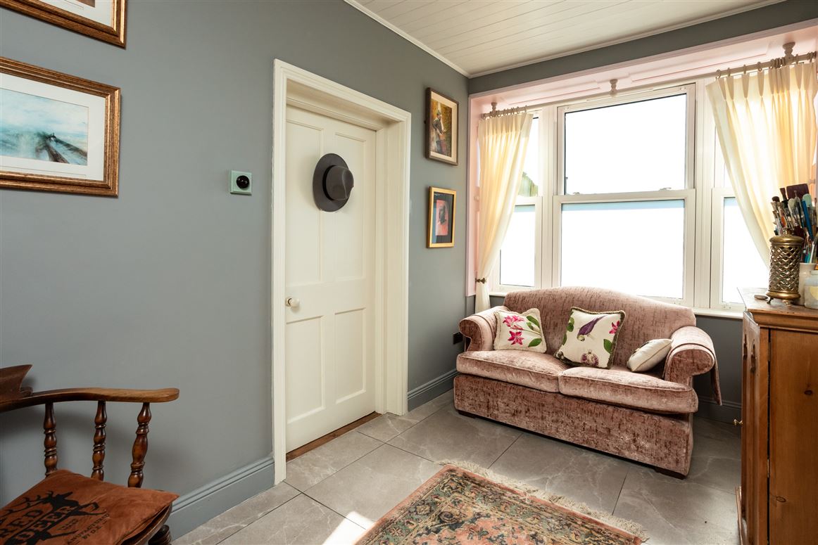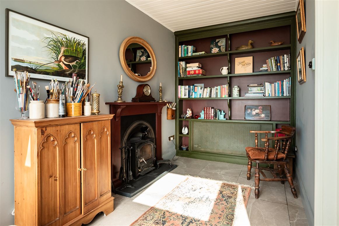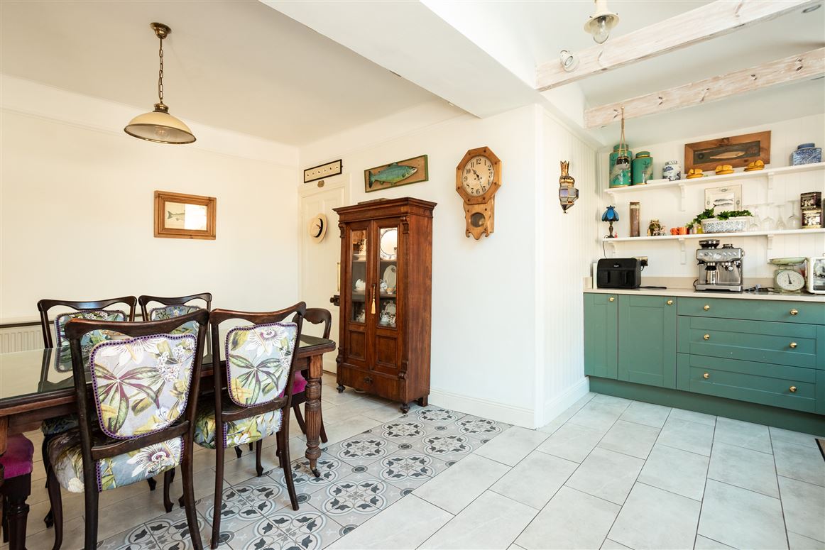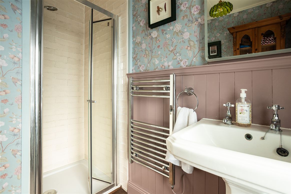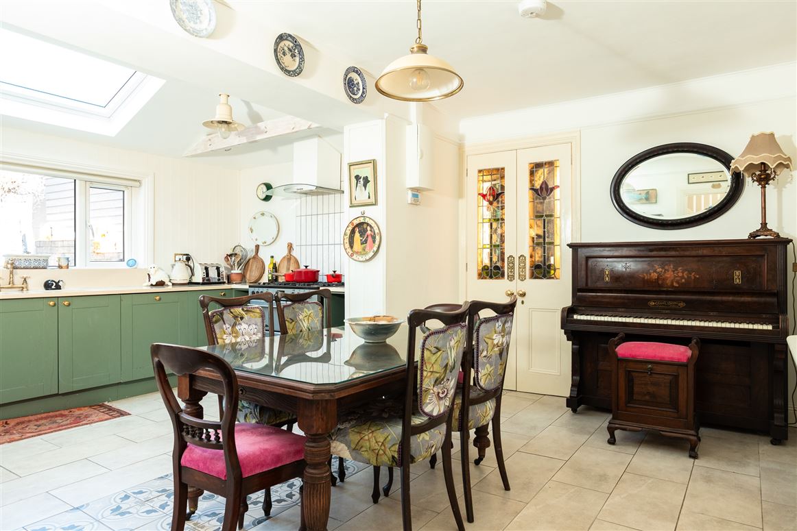 The accommodation is bright and well-proportioned throughout. At ground floor level, an entrance hall leads to a comfortable sitting room with open fireplace overlooking the front garden. A cosy study provides an ideal work from home space and is complemented by a convenient shower room on the ground floor. To the rear of the house lies a spacious country style kitchen and dining room which forms the heart of the home and opens directly to a sheltered courtyard garden.