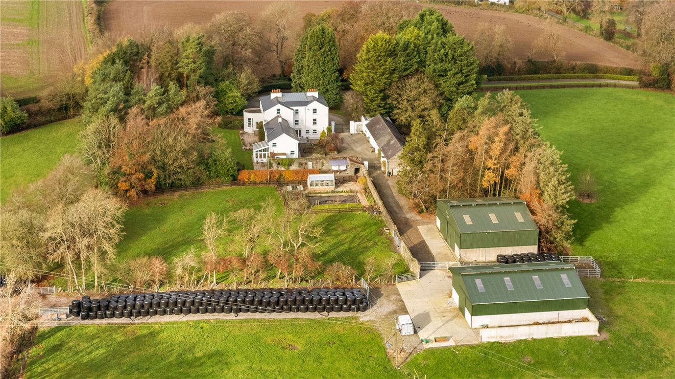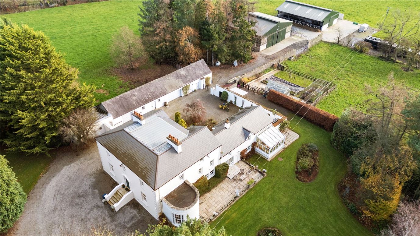 Renovated two storey over basement Georgian rectory set on about 55 acres of prime agricultural land on the Kildare / Wicklow border.